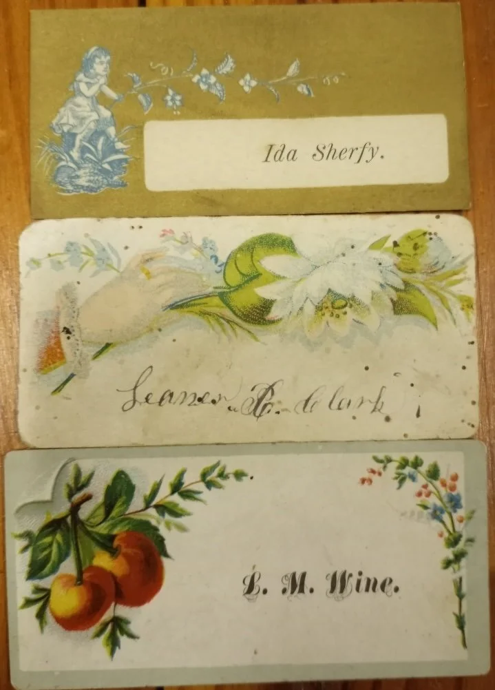 When chores like laundry or baking could take all day, our foremothers set aside a day to devote to said chores. These appointed days varied, woman to woman, as each set their own schedules. But as my mother pointed out, the women in a close-knit community had a general sense of who was doing what each day. Therefore, on Errand Day, a woman could expect to visit her neighbor with some expectation of seeing her at home. Thus, before the era of telephones, the tradition of leaving calling cards such as these came to be. If, by chance, your neighbor was not following her routine you could leave your beautifully personalized card indicating that said neighbor owed you a visit soon!